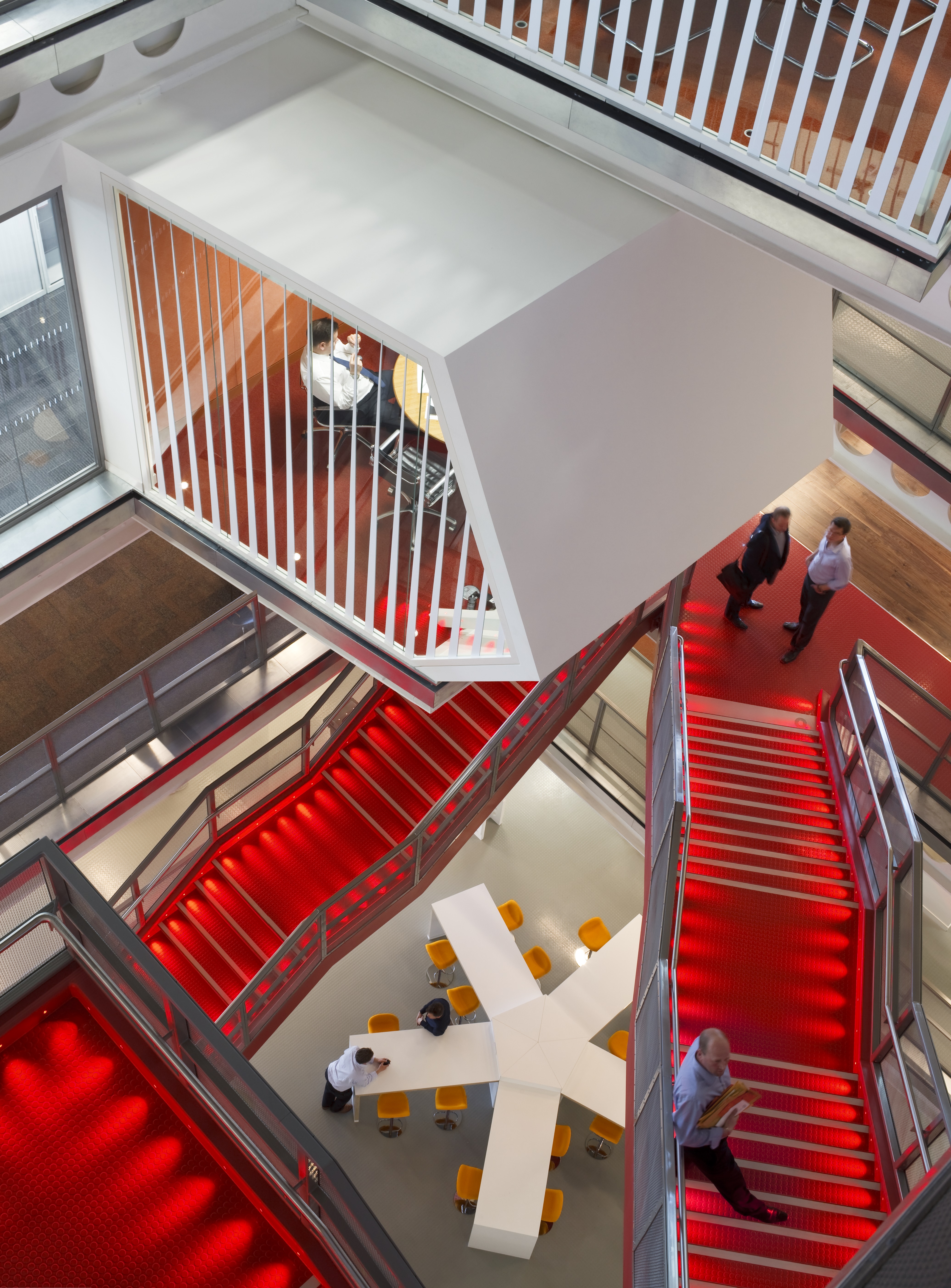 los beneficios de trabajar en la oficina. Para ello, se inspiraron en la importancia de mirar a la gente a la cara, ver el lenguaje corporal, oír el tono de la voz y otras sutilezas comunicativas. El resultado es un lugar que fomenta la productividad y la eficacia de los empleados.